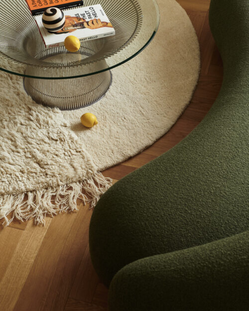 ARC is available in four round sizes, ø120cm ø160cm, ø200cm and ø250cm. Fringe is not included in the diameter. Fringe length follows rug size: ø120cm fringe is 12cm, ø160cm fringe is 16cm and so on.