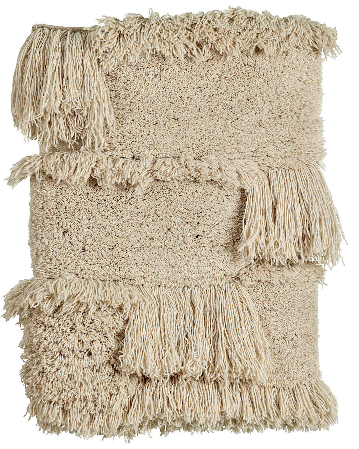 If the LINE 01 rug embodies the serene Nordic interior vibe, then its counterpart, the LINE 01 tapestry, can be likened to its spirited little sister eagerly preparing for a night out, flaunting its long fringes that dangle freely.