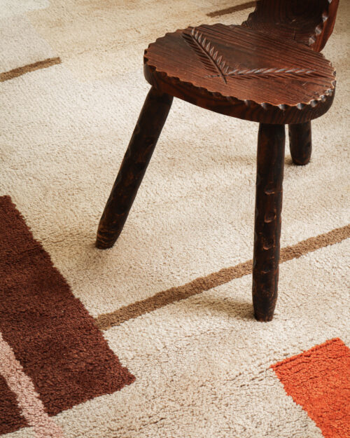 PATCH 01 is the rug equivalent of a cozy hug for your feet, boasting a shaggy texture that blends warm, earthy tones with bursts of brighter patches, infusing your space with a cheerful charm.