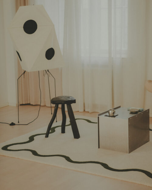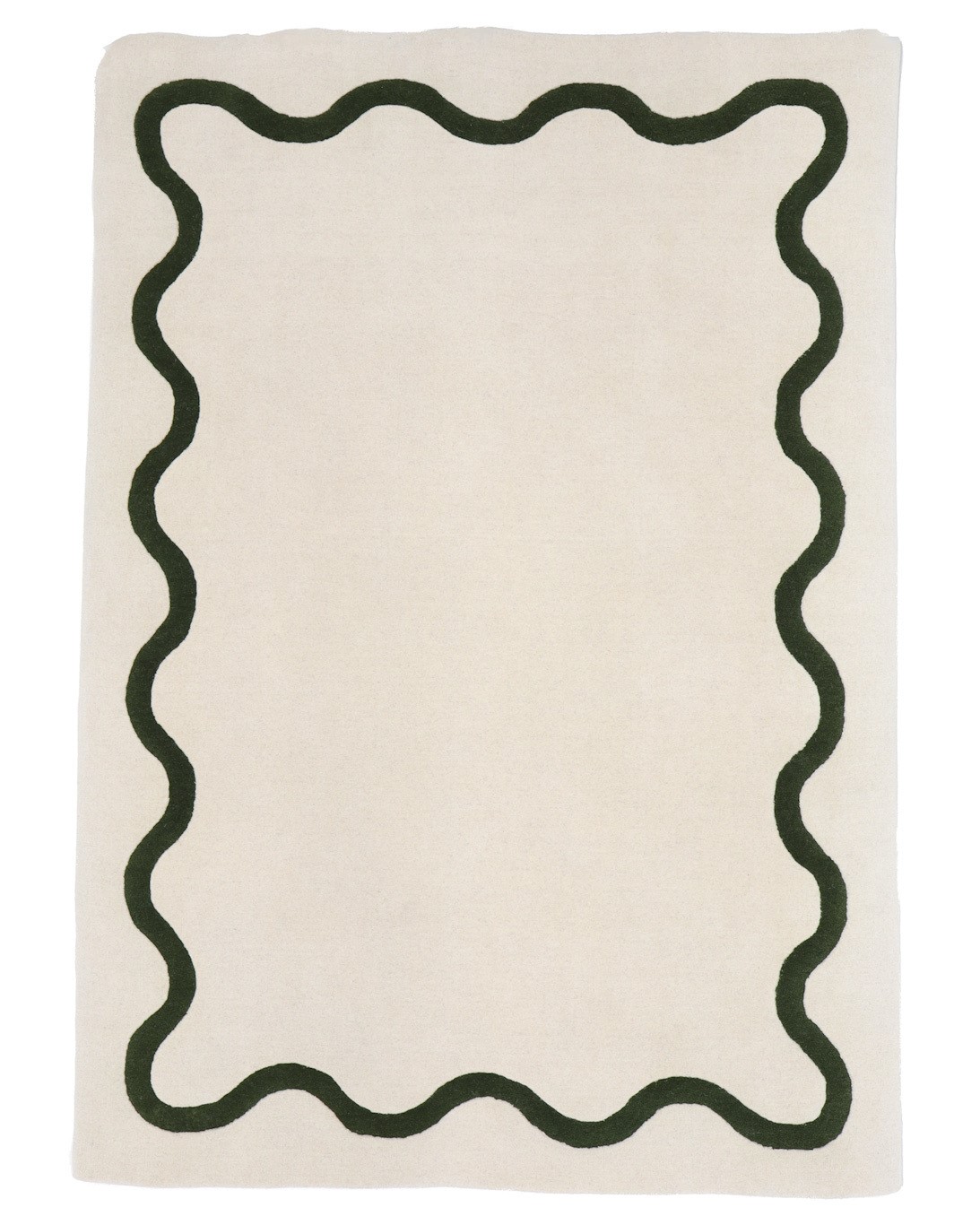 RIBBON Green weaves timeless hues into a single woven artifact. A plush, naturally white field—soft yet satisfyingly dense underfoot—is encircled by a ribbon pattern of perfect green. One glance might transport you to a Nordic forest; another, to a chic Parisian apartment. Some even see the fresh vibrancy of a ripe avocado in its lively tone. Wherever it takes you, this rug grounds any space with elegance.